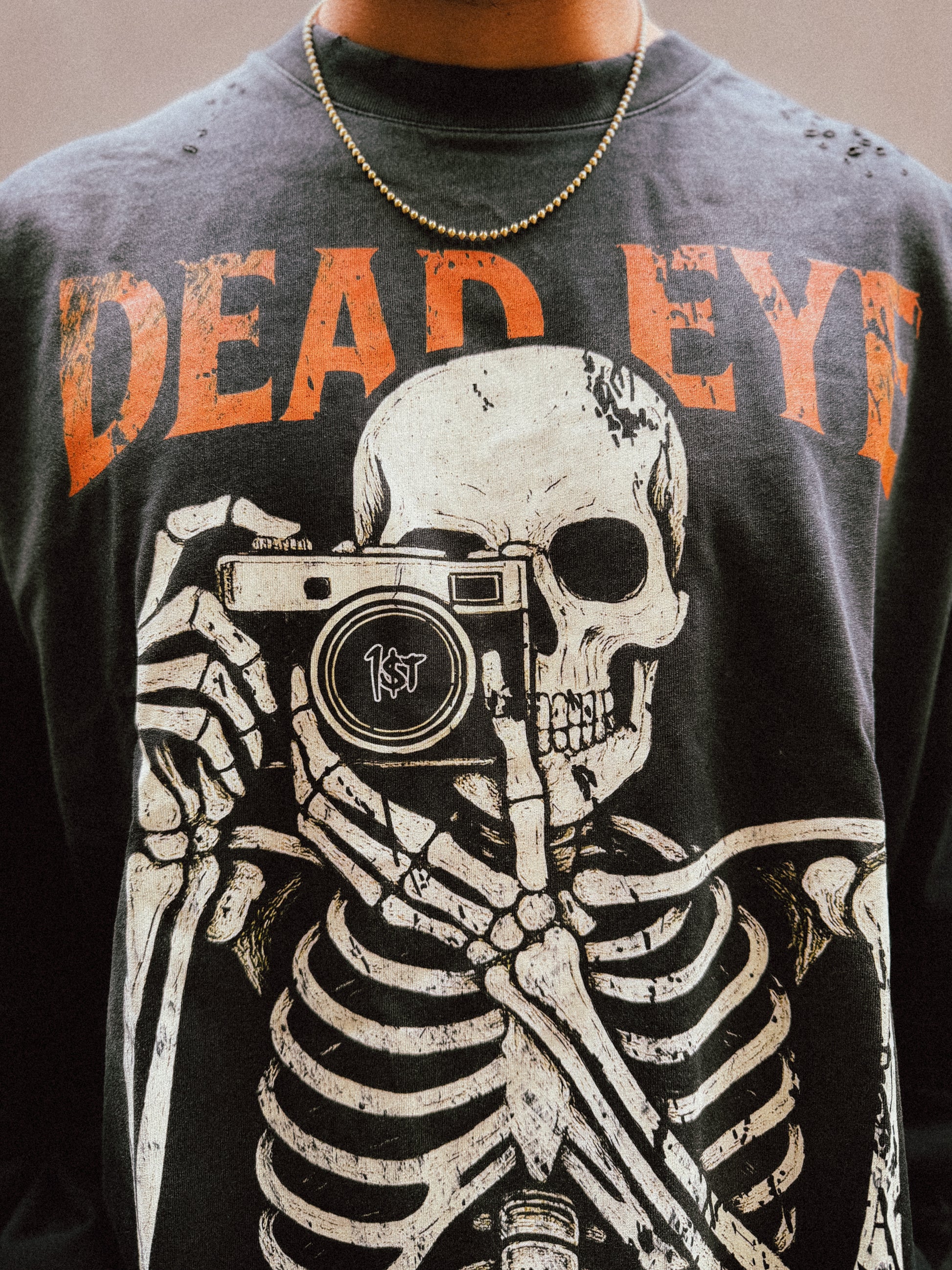 "DEAD EYE" V2 Sunfaded Distressed Heavyweight Long Sleeve Fake Tee (2 piece integrated look)